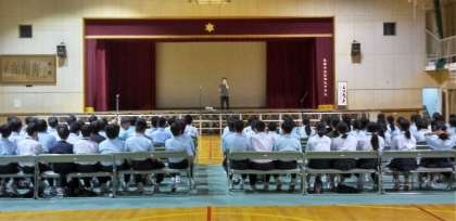 二年生は、体育館で文化発表会の練習、そして集会で、文化発表会の延期を連絡されました。