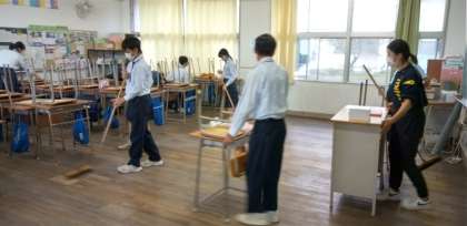 元気な生徒たちが、掃除を頑張っています。