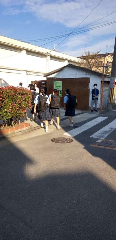 秋晴れの中、生徒たちが元気に登校して来ました!