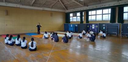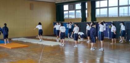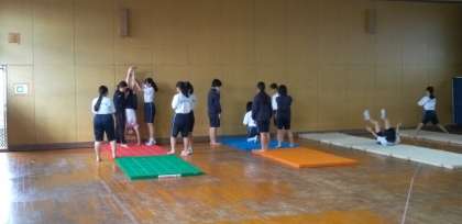 女子は格技室で、マット運動の授業です。