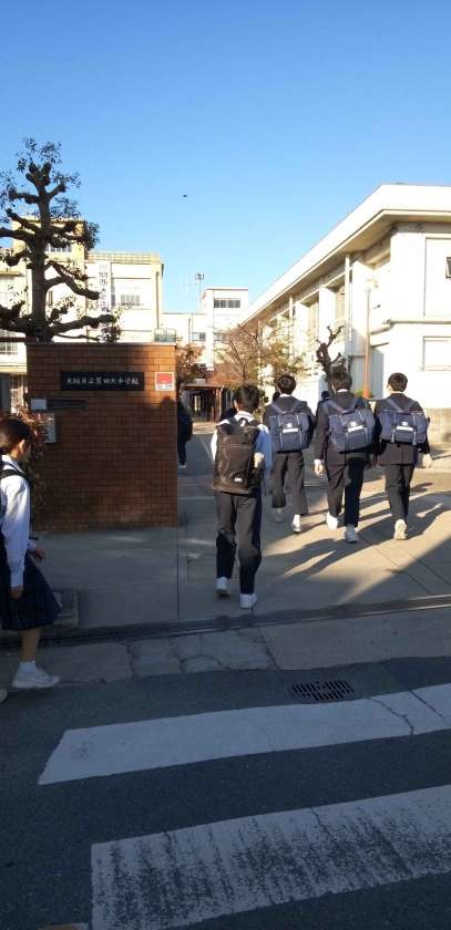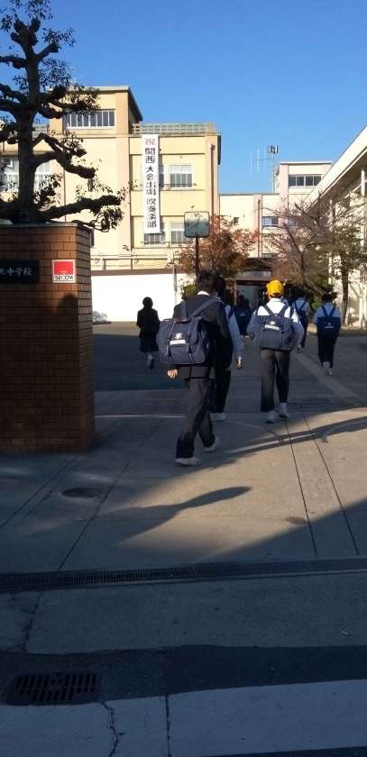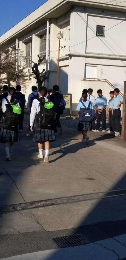 秋本番、快晴の中、生徒たちが元気に登校して来ました。