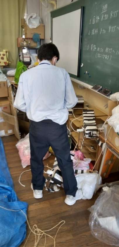 明日の本番を前に、大道具係の生徒が頑張っています。