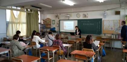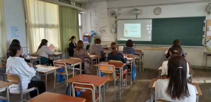 体育館が舞台準備のため、各教室にて、オンライン配信で実施しました。