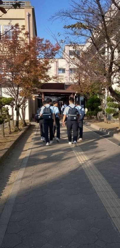 素晴らしい秋晴れの中、生徒たちが元気に登校して来ました!