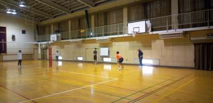 体育館では、男子バレーボール部が練習を行っています!