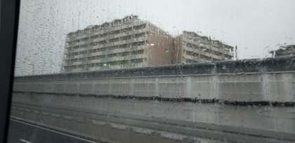 雨で視界が悪くなっています。