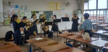 教室では、吹奏楽部が頑張っています!