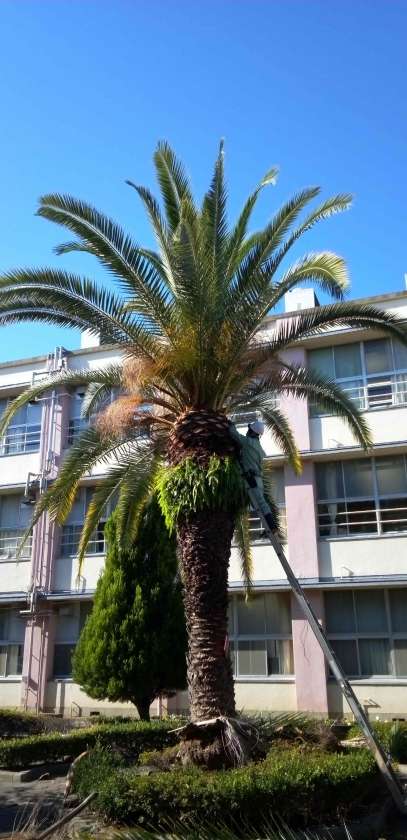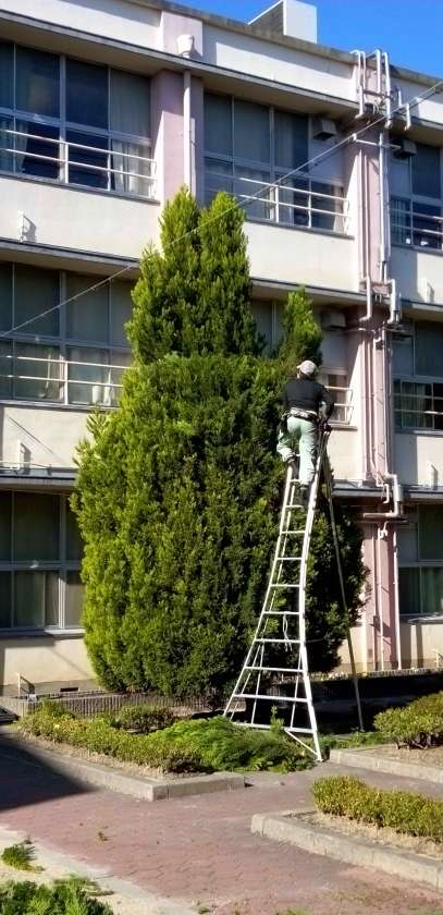 本日より樹木伐採のため、営繕園芸班の皆様が本校に来てくださり、作業を行っていただいています。