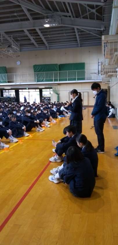 月曜日の朝、体育館で全校集会を実施しました。
