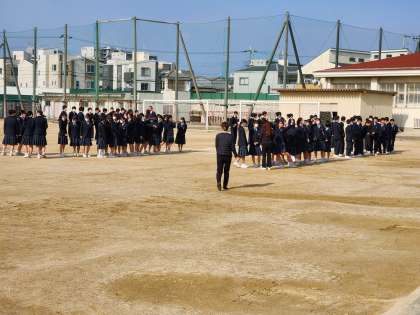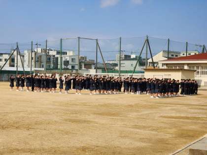 集合写真を撮りました。人文字を作って、屋上から撮影しています。