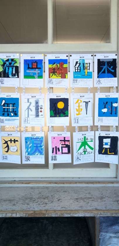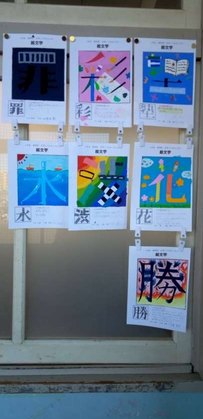 教室横廊下にキレイに掲示されました。