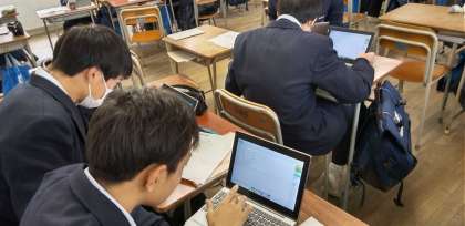 一人一台端末タブレットを活用しての、プログラミング学習です。