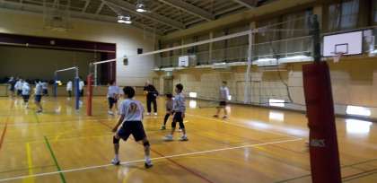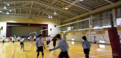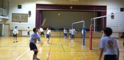 体育館では、男子バレーボール部が頑張っています。