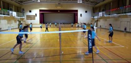 底冷えの体育館、バドミントン部の初打ちが始まりました。