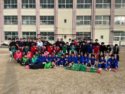 本日、本校グランドで初蹴りを行いました!大学2年生までのOBがたくさん来てくれて、大きく逞しく成長した姿を見ることができました。中には時間を見つけ、