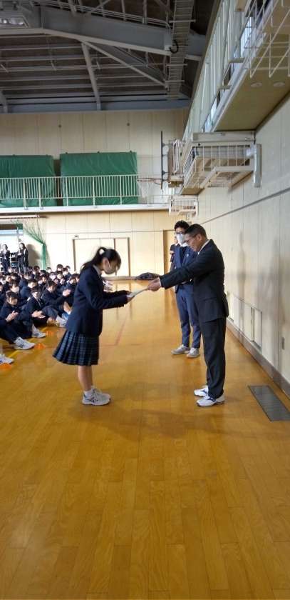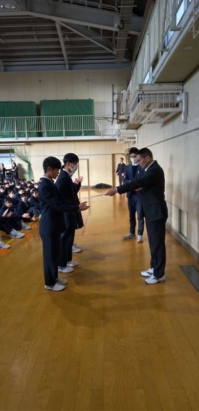 サッカー部の和歌山大会、吹奏楽部のアンサンブルコンテストの表彰をお行いました。