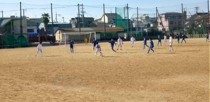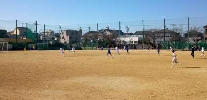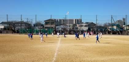 好天のグラウンドでは、サッカー部が練習試合を行っています。