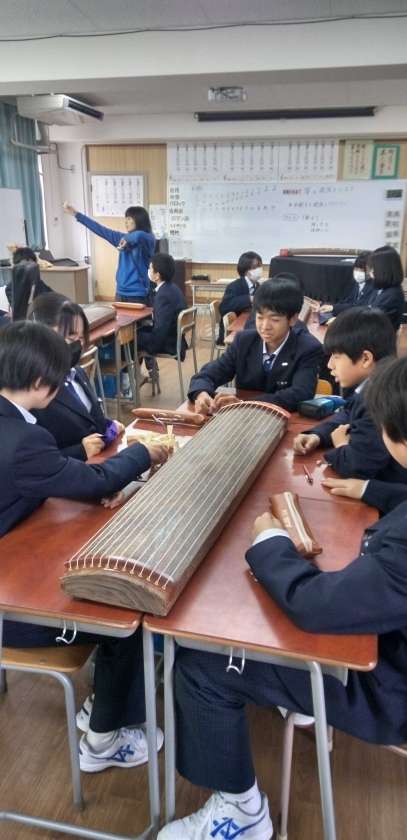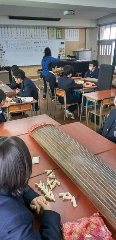 和楽器に親しむ授業です。