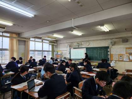課題について、グループで取り組んでいます。主体的な対話を通して、理解を深めます。