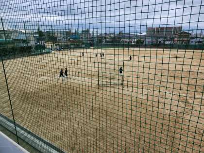 グラウンドでソフトボール部がランニングに取り組んでいます。しっかりとした走りです。