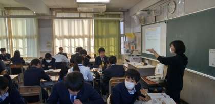 2年の家庭科では、河川氾濫についての班学習を行っています。発表が楽しみです!