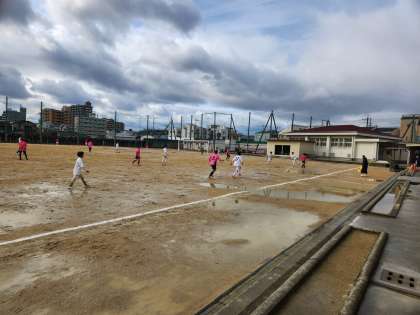冷たい雨、いたるところに水たまりがあるグラウンド状態の中ですが、溌溂とプレーしています。いい試し合いができているようです。