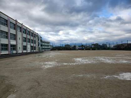 昨日の雨によりグラウンドに水たまりが残っているものの、雲の隙間から日差しがこちらに届いています。昨日よりも暖かく感じます。