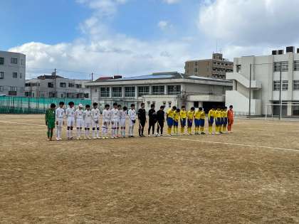 本日、放出中学校で2ブロック大会の準々決勝が行われました。相手は横堤中学校で、守備のうまいチームです。前半立ち上がりからボールを保持し、たくさんのシュートを打ちますが、相手のキーパーのファインセーブもあり得点できませんでした。逆に後半立ち上がりのFKを直接決められ
