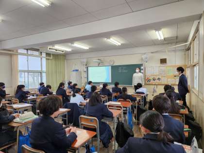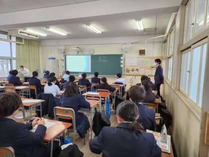 C-NETの方による授業です。英語圏と日本との文化、考え方を比較しながら、英語に触れています。