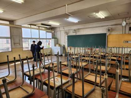 3年生は、公立高校の一般選抜入試の日です。今日、受験に行かない生徒で教室の掃除と油引きを行いました。