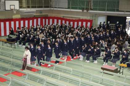 卒業生が入場します。盛大な拍手を浴びての入場です。