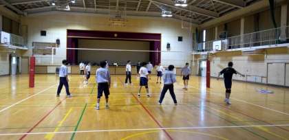 体育館では、男子バレーボール部が頑張って練習をしています!