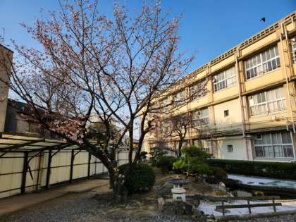 本日は、明日の入学式の会場準備。新入生を迎え入れる準備が着々と進められています。