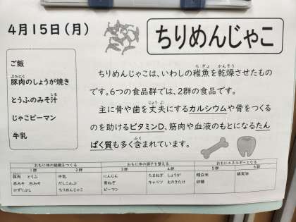 ちりめんじゃこは、いわしの稚魚を乾燥させたものです。6つの食品群では、2群の食品です。