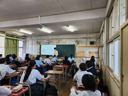 隣の席の人からの質問に対し、英語で答えます。話す力をつけます。