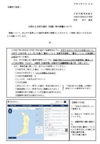 大雨による河川増水(氾濫)時の措置について