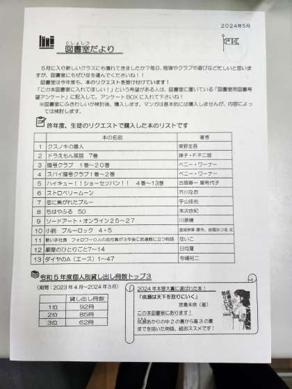 学校元気アップ通信・図書室だより 令和6年5月