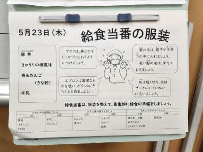 給食当番の服装について