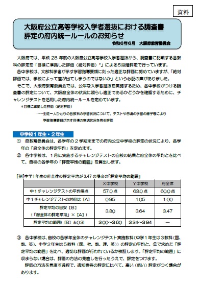 資料_大阪府公立高等学校入学者選抜における調査書評定の府内統一ルールのお知らせ