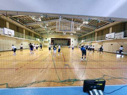 体育館の部活動の様子です。男子バスケットボールが活動しています。