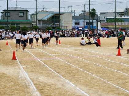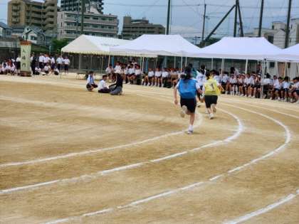 4×100mリレーの様子です。うまくバトンをつないで、次の走者に託します。