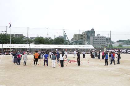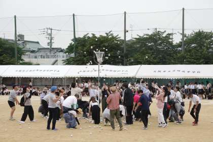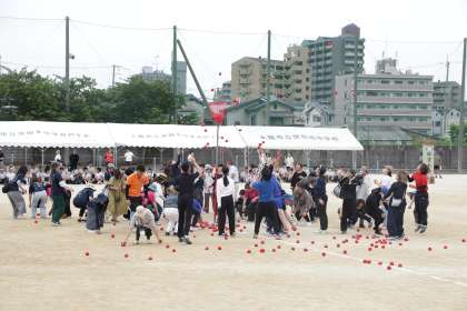 PTA種目として「玉入れ」を行いました。たくさんの方にご参加いただき盛り上がりました。