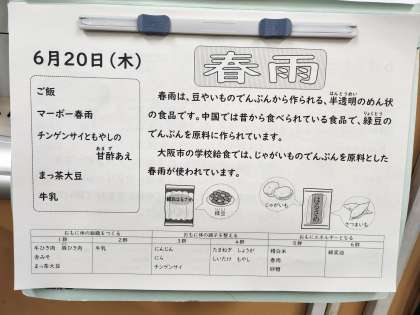 大阪市の学校給食では、じゃがいものでんぷんを原料とした春雨が使われています。