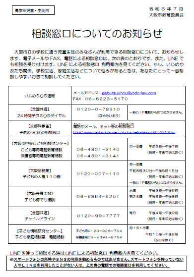 大阪市いじめ対策基本方針 〜 子どもの尊厳を守るために 〜(令和7年4月改正)