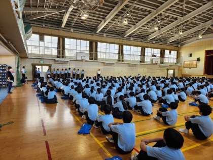 生徒専門委員会から今月の目標が伝えられました。目標を達成することで、みんなが気持ちよく過ごせる学校にしていきます。みんなで創ろう、茨田北中学校!
