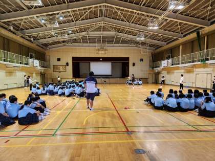 1年生は、体育館で平和学習を行いました。