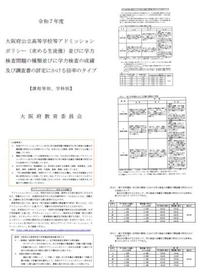 <令和6年7月8日発表>令和7年度大阪府公立高等学校等アドミッションポリシー(求める生徒像)並びに学力検査問題の種類並びに学力検査の成績及び調査書の評定にかけるタイプ【課程等、学科別】について