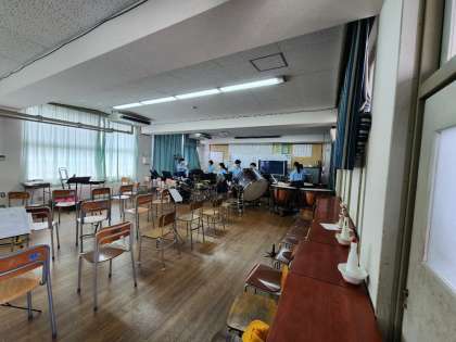 各パートに分かれて練習しています。先輩と後輩、対話を通して確認しながら、技術の向上を図っています。