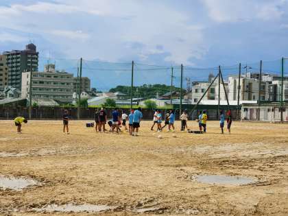 朝の雨の影響でグラウンドの状況は今一つですが、その環境を克服するかのように集中して取り組んでいます。