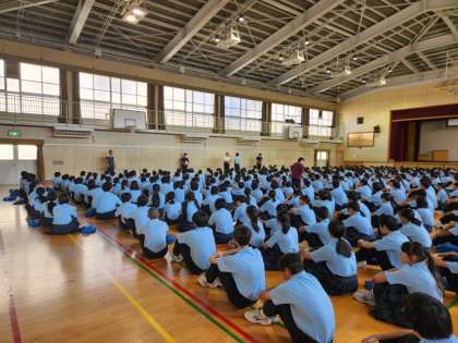 毎週月曜日には、全校集会があります。みなさん、早めに集合完了し、静かに始まりを待っています。ありがとうございます。